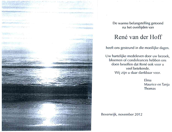 Dankbetuiging Rene van der Hoff