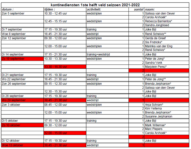 Trainingstijden